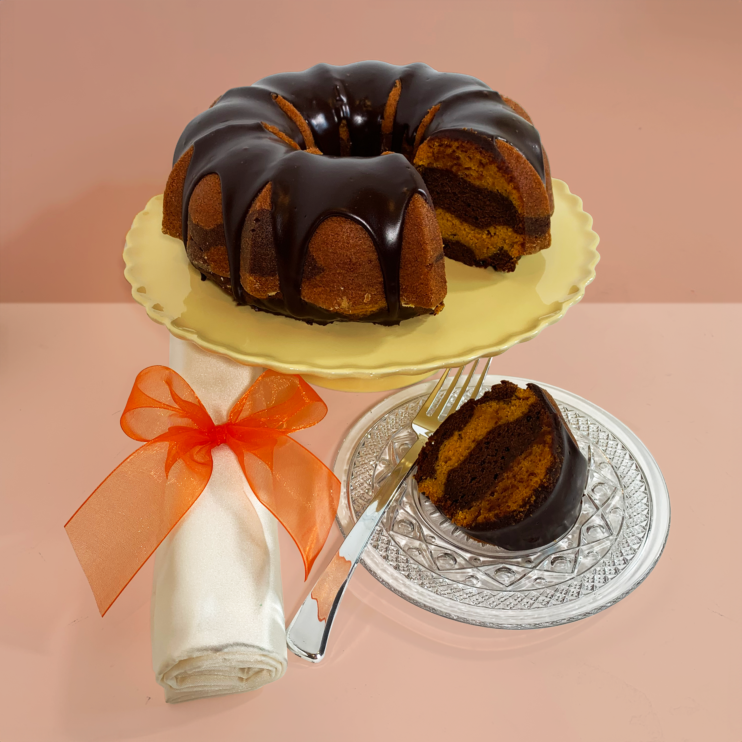A seasonal favorite with a beautiful twist! Our Pumpkin Marble Bundt Cake blends rich chocolate and spiced pumpkin batters to create a moist, tender cake with a stunning marbled design. Each bite delivers warm notes of cinnamon, nutmeg, and vanilla balanced by smooth cocoa for the perfect fall flavor. Finished with a ganache topping, it’s an irresistible treat for cozy gatherings, coffee breaks, or holiday celebrations. Perfect for Thanksgiving tables, autumn parties, or gifting to your favorite pumpkin lover.